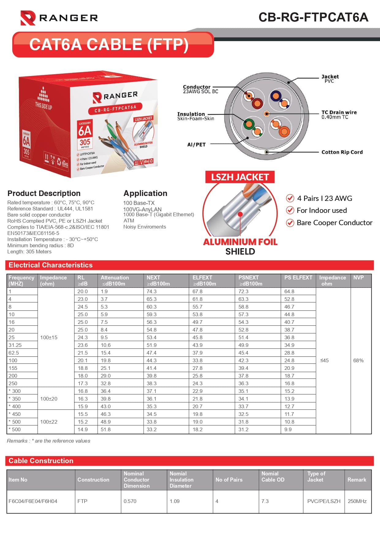 • – CB-RG-FTPCAT6A, 4 Pairs, 23AWG