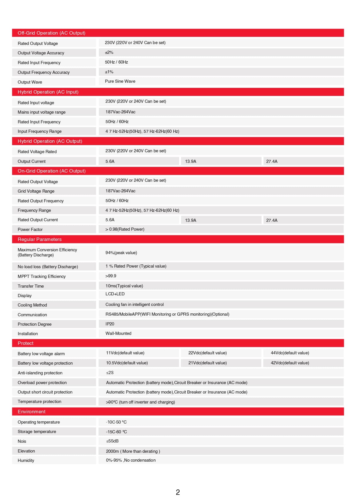 – MPPT Tracking Voltage Range: 30Vdc-240Vdc/40Vdc-450Vdc/80Vdc-450Vdc