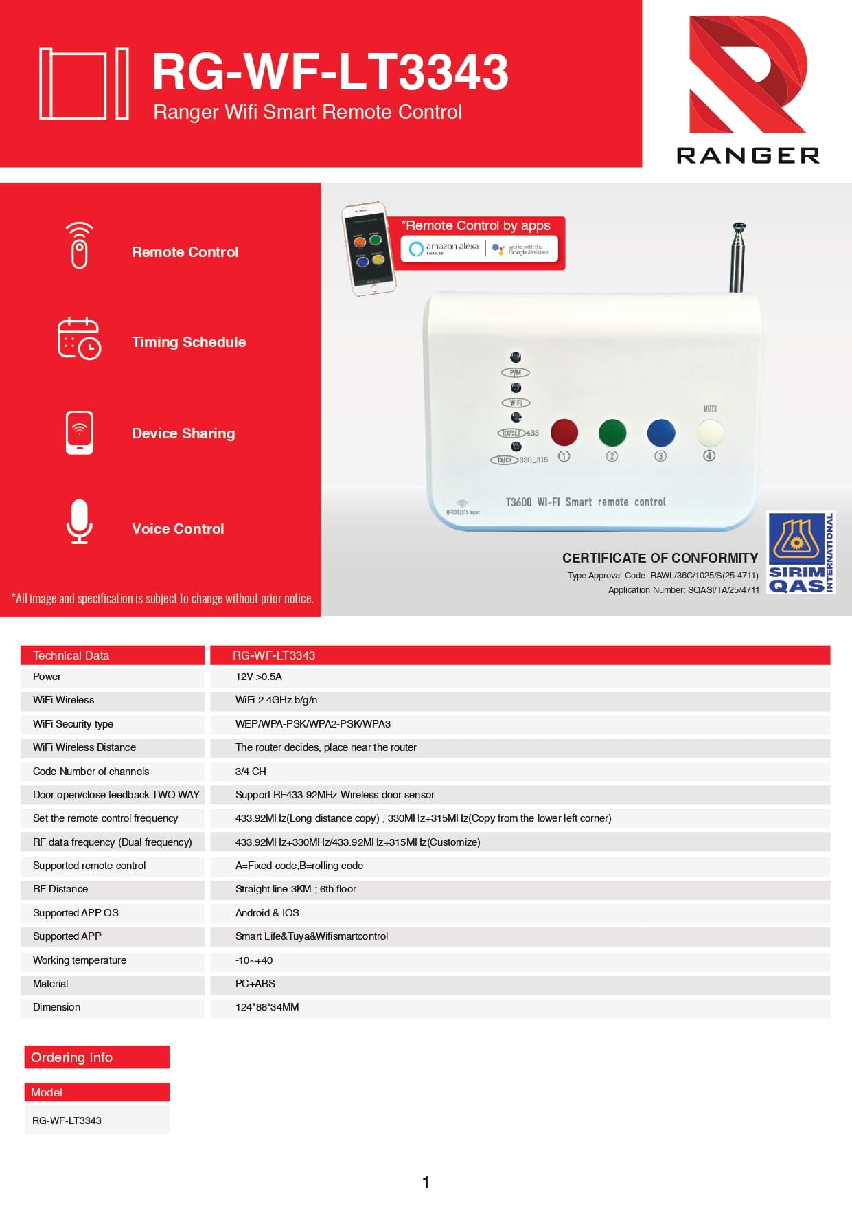 – Door open/close feedback TWO WAY: Support RF433.92MHz Wireless door sensor
