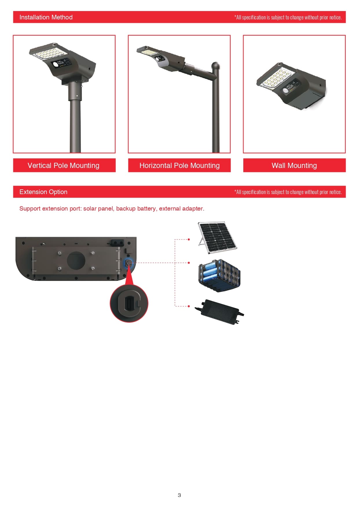 – External solar charging indicator: Plug in and showed